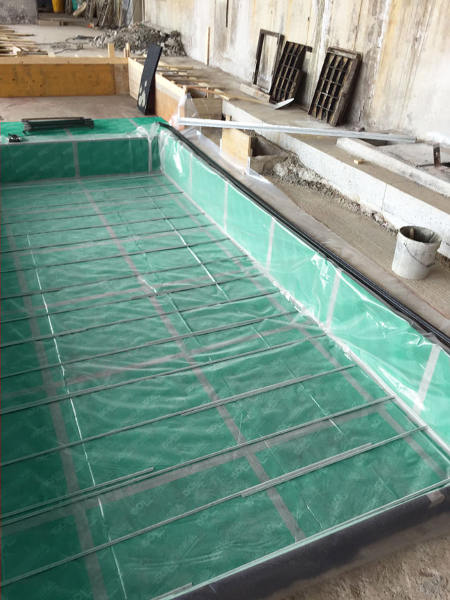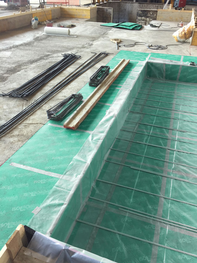 Um die Verstärkung der vom System kommenden Vibrationen durch die Verwendung von Betonstrukturen zu begrenzen, wurde die Produktlinie MEGAMAT 25/950 als Antivibrationslösung verwendet.