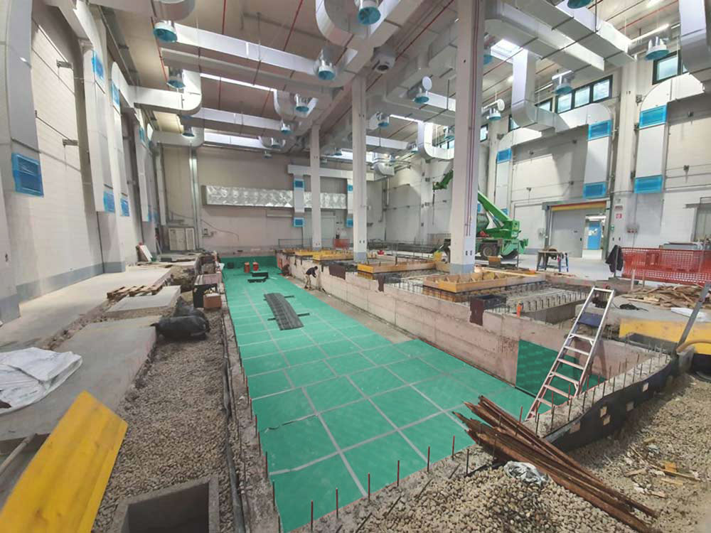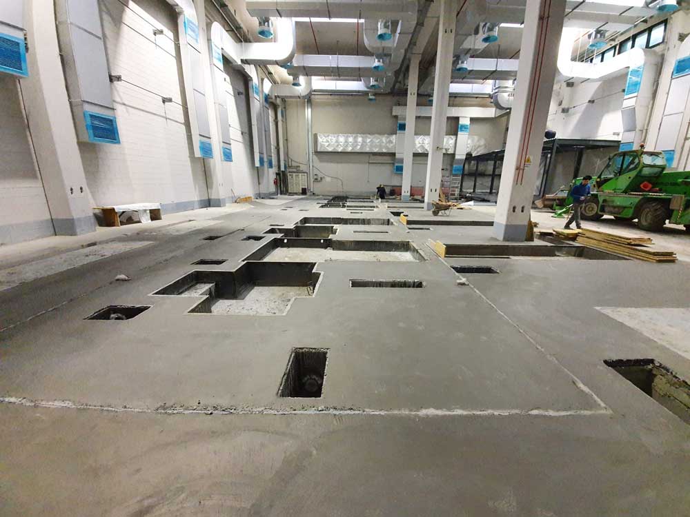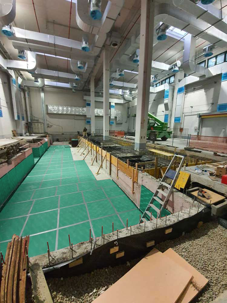 Um den baulichen Anforderungen des Kunden und den Vibrationsproblemen der Maschinen gerecht zu werden, wurde eine schwingungsdämpfende Lösung mit Platten von Isolgomma vorgeschlagen, die durchgehend unter Estrich verlegt werden. Durch den kombinierten Einsatz von MEGAMAT 25/500 und 50/500 gelang es, die von der Rotationsdruckmaschine erzeugten Schwingungen zu kontrollieren.