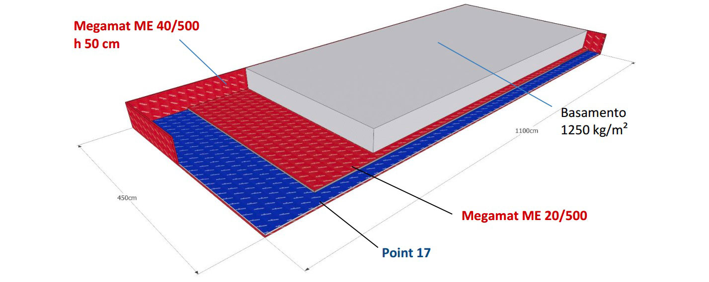 Um den Konstruktionsanforderungen des Kunden und den Schwingungsproblemen an Maschinen zu entsprechen, wurde eine Antivibrationslösung mit Isolgomma-Platten vorgeschlagen, die unter-Estrich angeordnet sind. Die Kombination zwischen die Produkten MEGAMAT 25/500 und Point ermöglichte, die Vibrationskontrolle mit reduzierten Belastungen und eine einheitliche Lösung für alle Maschinen zu gewährleisten.